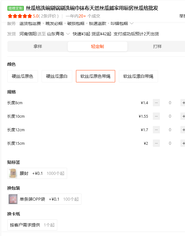 Natural Colored Loofah with String: Price and Specifications