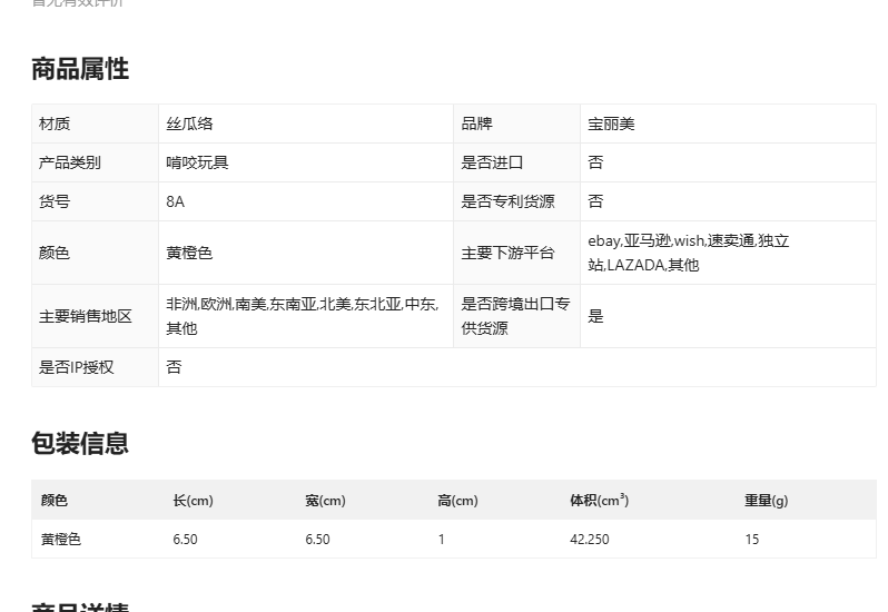 Product Attributes and Packaging Information
