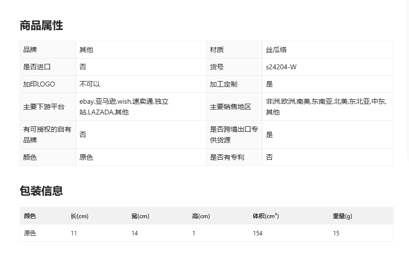 Product Attributes and Packaging Information